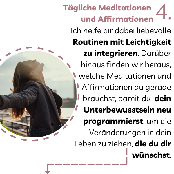 Eni hat durch meine Unterstützung in den letzten 12 Wochen neue, liebevolle Routinen integriert und lebt dadurch in mehr Leichtigkeit, Dankbarkeit und Erfüllung.
